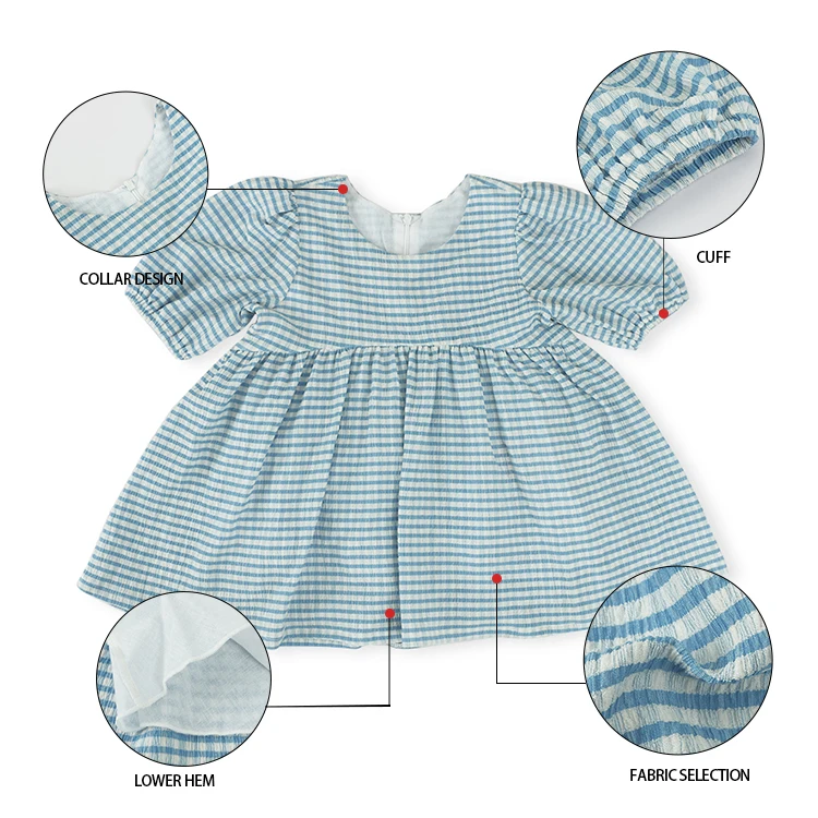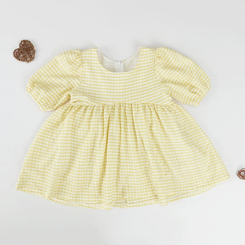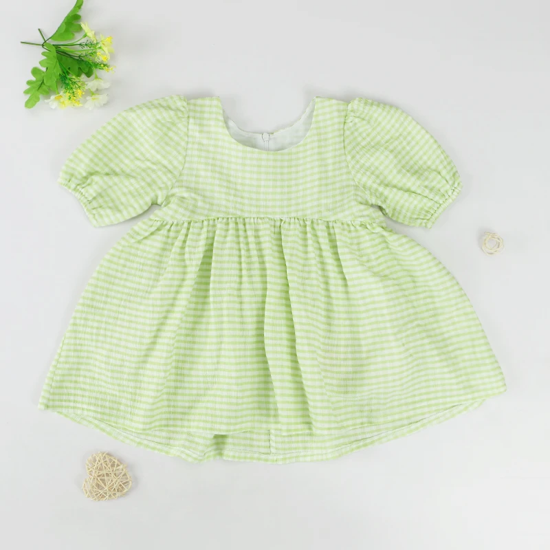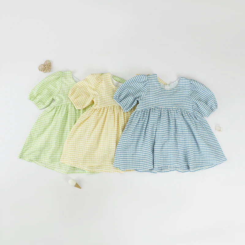 New Design Short Sleeve High Quality Summer Checkered Princess Baby Little Girls Dresses